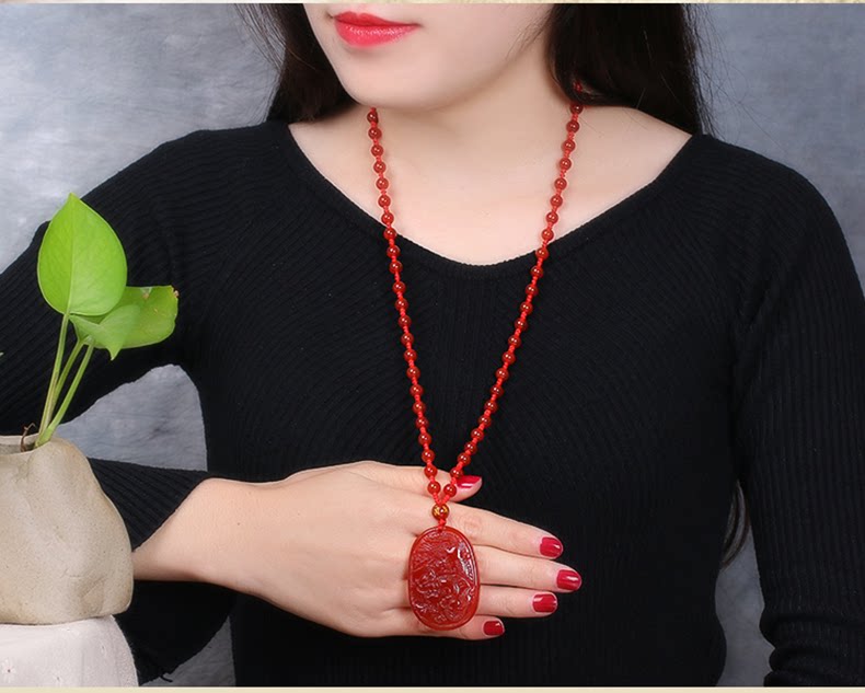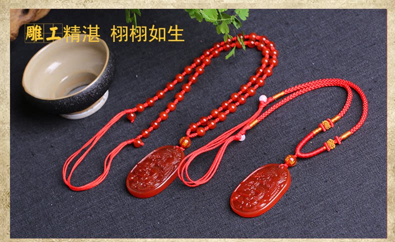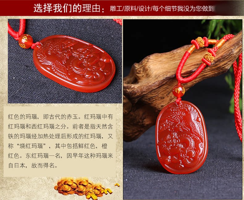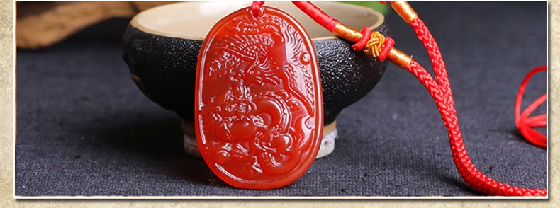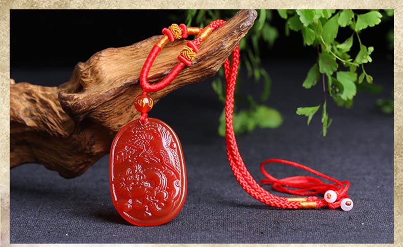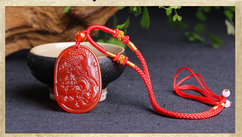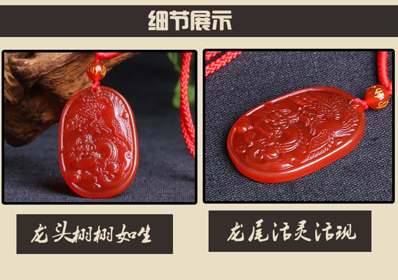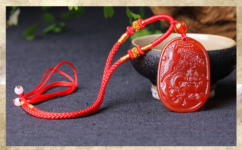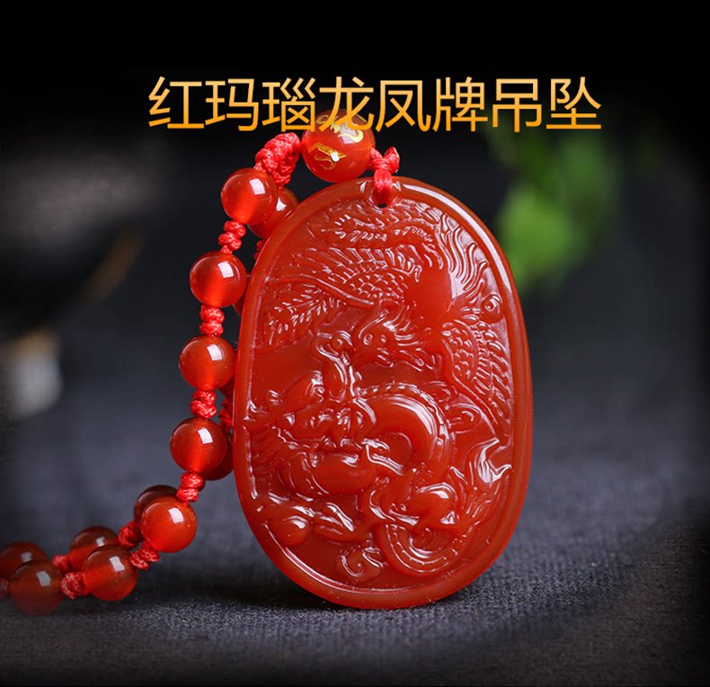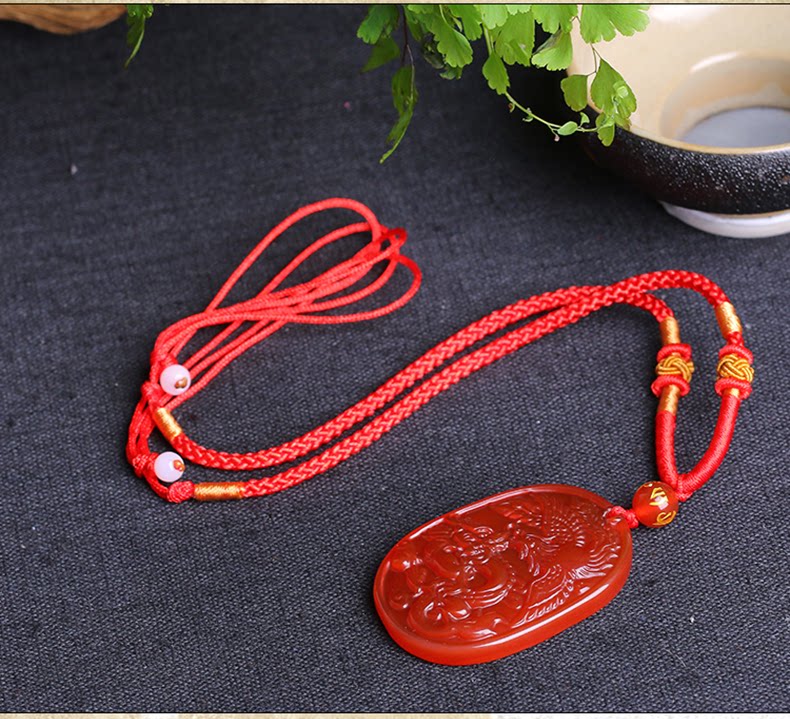 开光红玛瑙吉祥物 酉奇辰元吊坠 龙凤鸳鸯姻缘扣五行八卦福