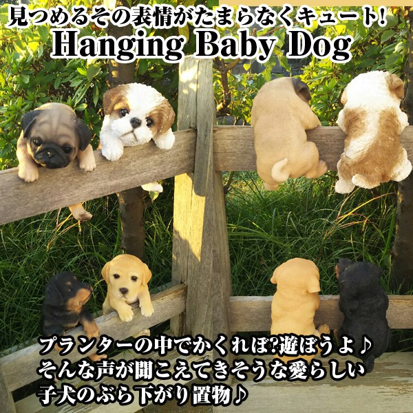 プランターの中でかくれぼ?遊ぼうよ♪そんな声が聞こえてきそうな愛らしいワンちゃんのぶら下がり置物♪見つめるその表情がたまらなくキュート!今にも動き出しそうなほど、その表情・仕草が超リアル!! まん丸お目めのワンちゃんの置物です。ぶら下がりタイプのため、お庭のプランターカバーやお部屋のグリーンの鉢、 ワインの木箱などに掛けてお使いください。丈夫なレジン製だから、屋外での使用でもご安心ください。うるうるした瞳やその毛並、色合い、手、足が本当にリアル!足の肉球で踏ん張ってる感じがよく出ていて、かわいさ倍増!!ガーデニングのレイアウトに、こんな可愛い置物を置けば、賑やかで楽しくなりそうですね。■商品サイズ: