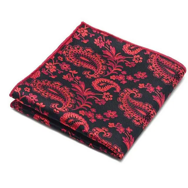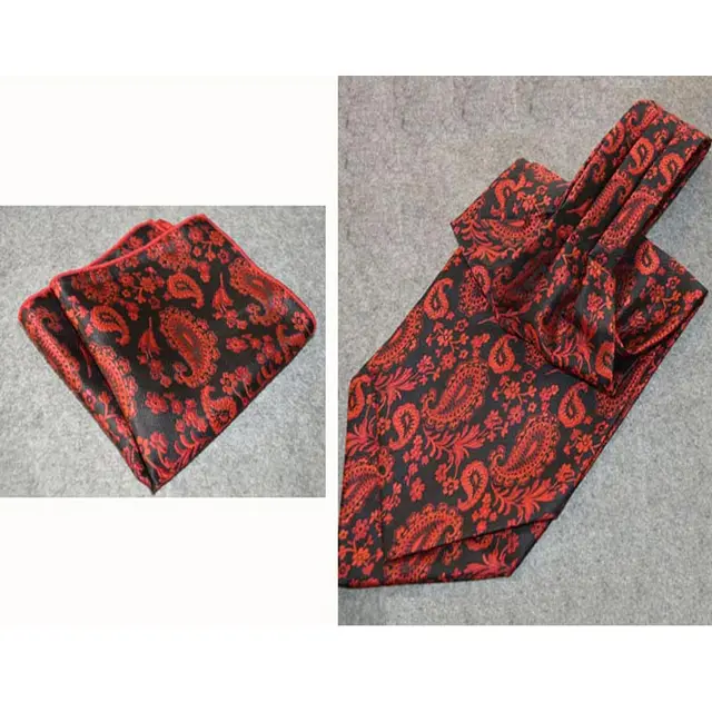 LJT01-03 남성 블랙 레드 페이즐리 폴리 에스테르 실크 에스코트 넥타이 넥타이 세트 짠 빈티지 뜨거운 넥타이 포켓 스퀘어 손수건 정장 세트