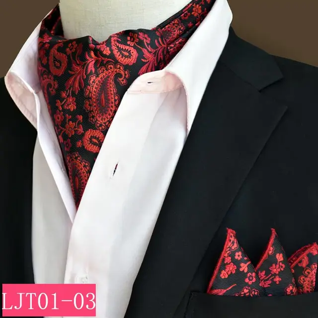 [해외]LJT01-03 남성 블랙 레드 페이즐리 폴리 에스테르 실크 에스코트 넥타이 넥타이 세트 짠 빈티지 뜨거운 넥타이 포켓 스퀘어 손수건 정장 세트