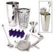 Sleek bar tool set that makes mixing and serving your favorite cocktails a professional presentation. Whether you're serving with a twist or straight up, this home bar set makes the perfect partner. One glass, 28oz boston shaker with seven delicious recipes, waiter's corkscrew. Four-prong bar strainer, 11 twist-handle bar spoon, oz x 1 oz jigger, and four bottle pourers.