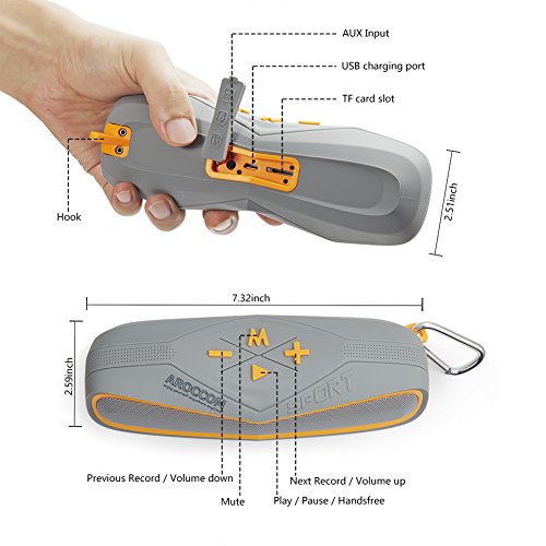 Title : AROCCOM Portable Outdoor Bluetooth Speakers IPX7 Waterproof Shower Speaker