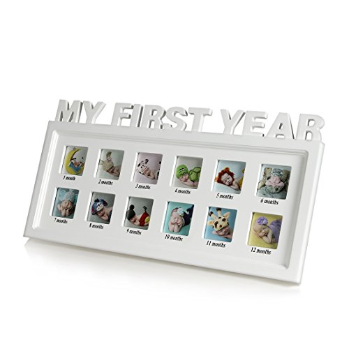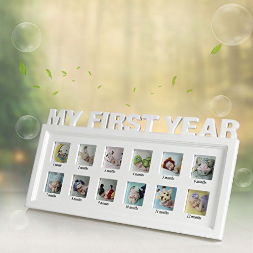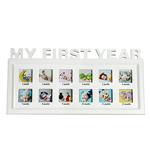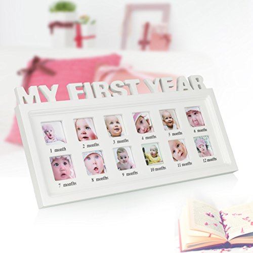 BOJIN My First Year Baby Keepsake Frame - Children 's Growth Record, White Creative 14x4.4inch Photo Frame ,For Wall Hanging And Table Top Picture Frame...