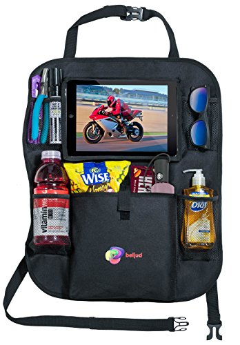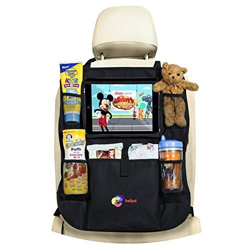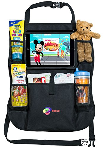 BELJUD BACKSEAT CAR ORGANIZER, THE ULTIMATE CAR ORGANIZER FOR CHILDREN WITH 10" IPAD TABLET HOLDER, SEAT PROTECTOR AND KICK MAT