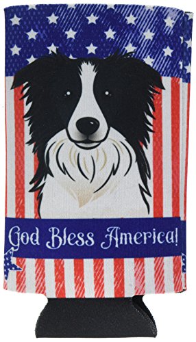 Caroline's Treasures BB2171MUK "God Bless American Flag with Border Collie Michelob Ultra Koozies for Slim Cans, Multicolor