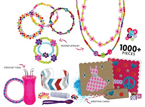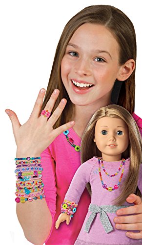 Be the ultimate crafter with the American Girl Ultimate Crafting Kit by Fashion Angels! This kit has all essentials items to create and design jewelry and other craft projects for you and your doll! Includes mini bottles, large bottle, spools, twine, elastic cord, embroidery floss, mini clothespins, round beads, iridescent donut beads, wooden beads, pearls, cube beads, buttons, mini start beads, cylinder beads, earring hooks, jump rings and design guide and instructional design guide. Recommended ages 8+.Feature