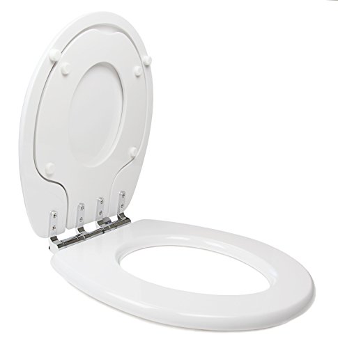 -. Feature : Adult size toilet seat converts to toddler seat with flip of the toilet ring and imbedded magnets / Toddler ring does not pull off, absolutely safe and secure / Bumpers under toddler seat prevent fingers from getting pinched / Durable wood construction, hand sanded, flawless high gloss painted finish / Sturdy and stylish chromed metal hinges, fits round bowls, three-year warranty!