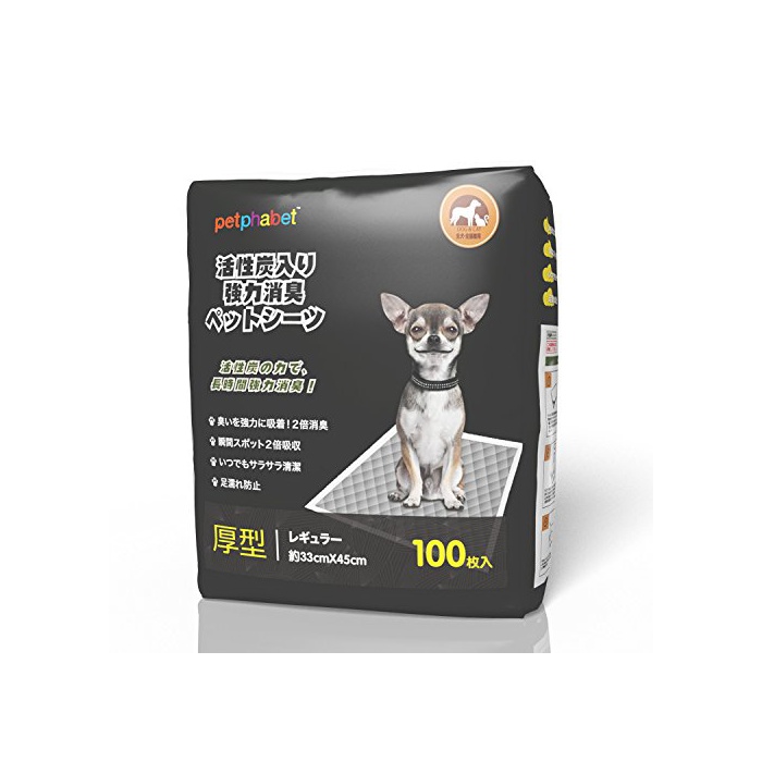 원본상품명:Petphabet ペットシ?ツ 炭入り カ?ボン 消臭 瞬吸 厚型 レギュラ?サイズ 100枚