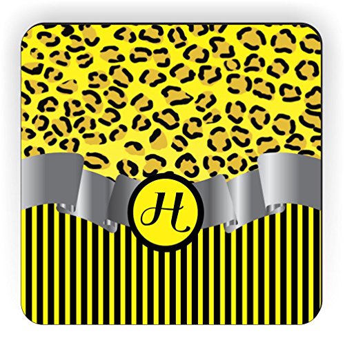Rikki Knight Letter "H" Initial Yellow Leopard Print and Stripes Monogrammed Design Square Fridge Magnet