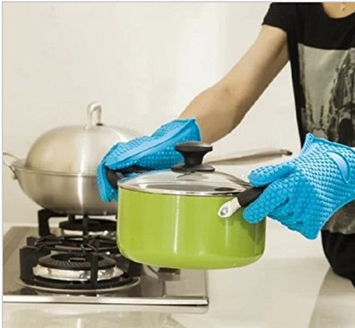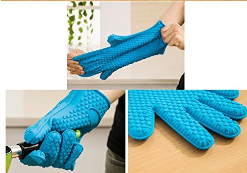 KisKis 1 Pair (2 Gloves) Silicone Heat Resistant Grilling BBQ Mitts Gloves for Cooking, Baking, Oven, Smoking and Potholder (Orange, Medium)
