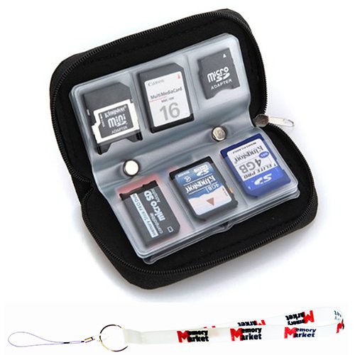 MemoryMarket Memory Card Carrying Case - Black / Wallet / Holder / Organizer / Bag - Storage for SD SDHC CF xD Camera Memory Cards with Lanyard