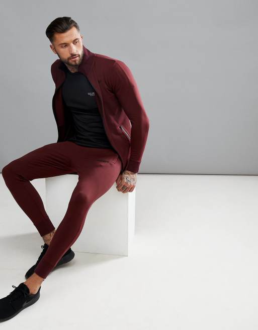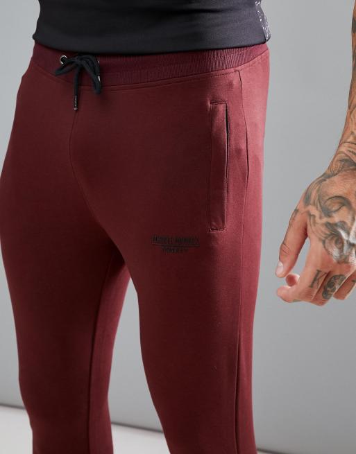 Muscle Monkey Skinny Joggers In Burgundy