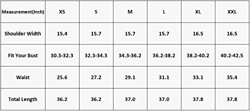 S: Bust 32.3-34.3 Inches,Waist 27.2 Inches,Total Length 37.0 Inches
