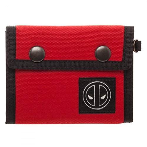Product DescriptionMarvel Comics Boxed Deadpool Trifold Snap Wallet. Design features a pu faux leather character logo patch embroidered on a heavy canvas tri-fold push snap wallet with multi card slots D-ring / keyring.0