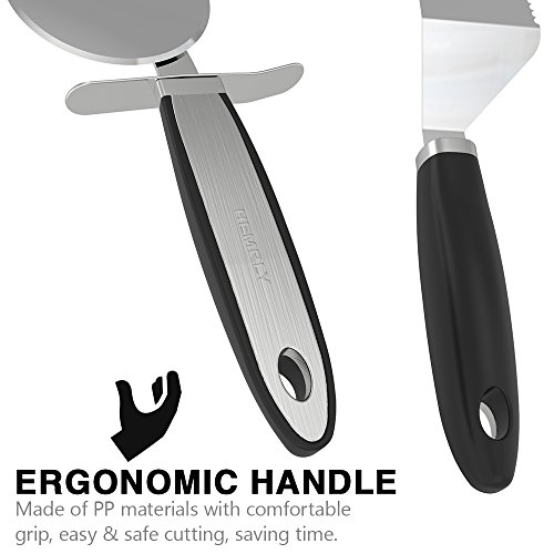 Studio : HEMRLY Publisher : HEMRLY Product Description Cut your pizza in safety and comfort with the HEMRLY Pizza Wheel. The pizza wheel features a sturdy, stainless steel cutting blade which slices through the thickest pizza crust with ease, and an angled wheel that offers optimal comfort and performance. The ergonomic handle provides a comfortable grip.