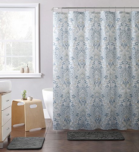 - BEAUTIFUL DESIGN - This stylish bath rug set adds subtle style and design to any bathroom. The set includes bathroom rugs featuring a gorgeous floral pattern and a stylish curtain.