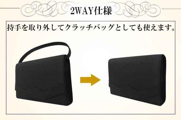 持手を取り外してクラッチバッグとしても使える2WAY仕様のフォーマルバッグ。グログラン生地を使用したシンプルなデザインです。 |