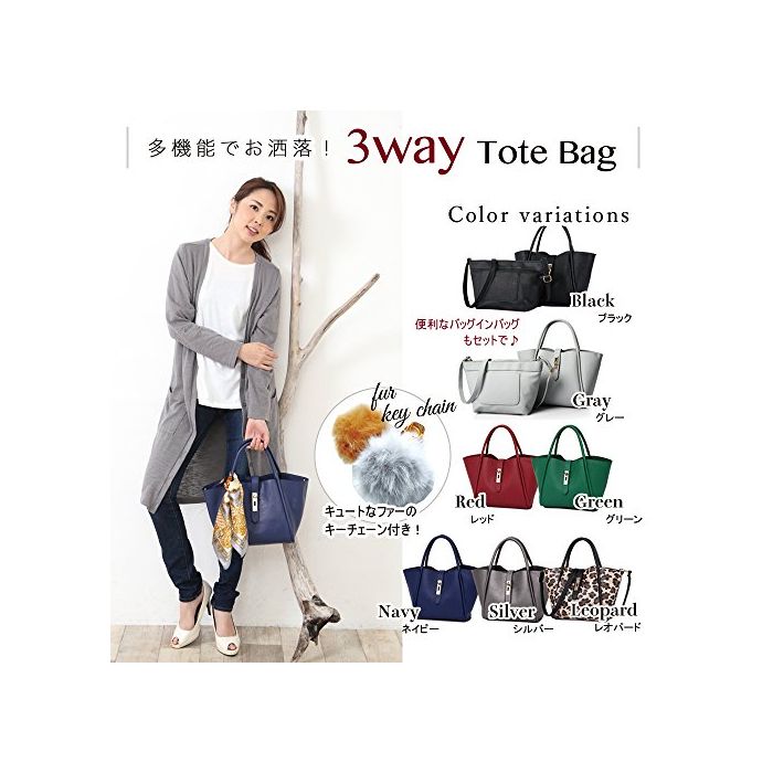 DRESSTAR 상품 숄더 핸드백 3WAY + 퍼(fur)참의 세트 / 심플 토트백 상질 엘레강트 외출 결혼식 입학식 졸업