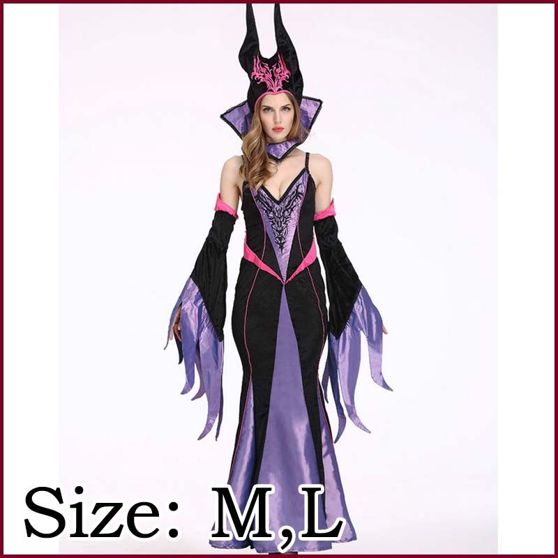 ハロウィン 悪魔 デビル 魔女 小魔女 デビル コスチューム コスプレ衣装 ハロウィン 女王 QUEEN クィーン ロングドレス 仮装 舞台 ダンス ステージ パーティー コスプレ衣装 イベント パーティ スプレ衣装 パープル レッド 赤 魔女 魔法使い 魔法師 メール便不可