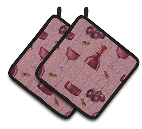 Caroline's Treasures Red Wine On Linen Pair of Pot Holders, 7.5HX7.5W, Multicolor
