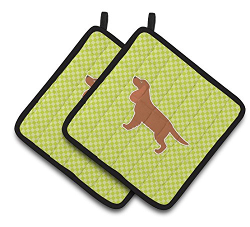 Caroline's Treasures English Cocker Spaniel Checkerboard green Pair of Pot Holders BB3812PTHD, 7.5HX7.5W, Multicolor