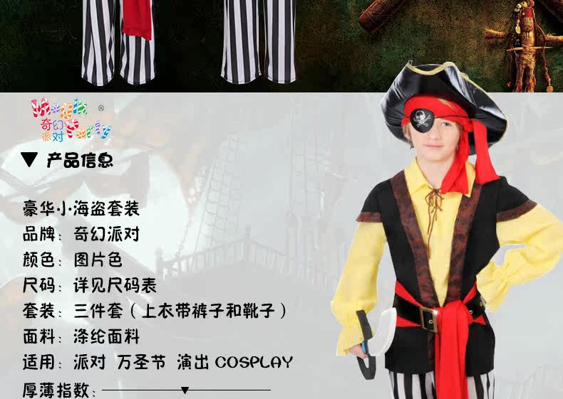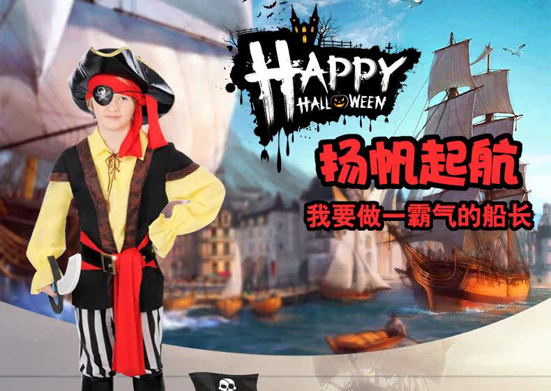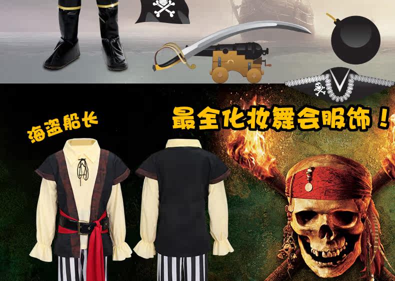 万圣节儿童演出服装加勒比女童海盗男童杰克海盗船长Cosplay服饰