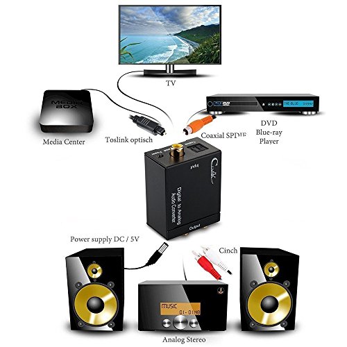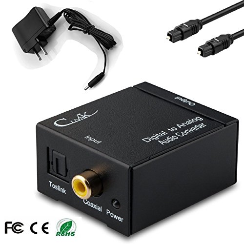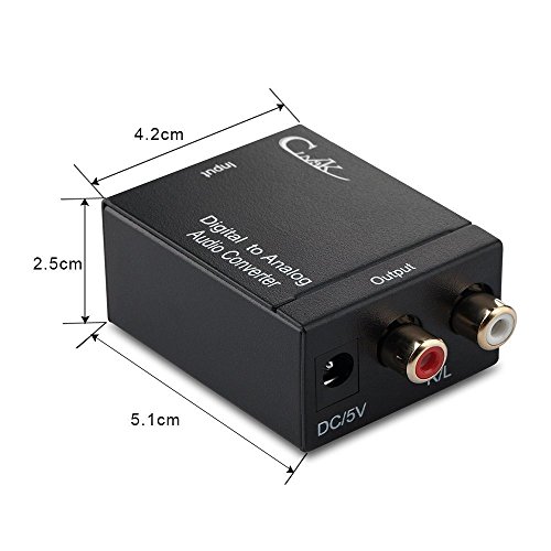 Cingk Digital Coax or Optical Toslink To Analog R/L Audio Converter Decoder With 5V/1A Power Adapter and Fiber Cable
