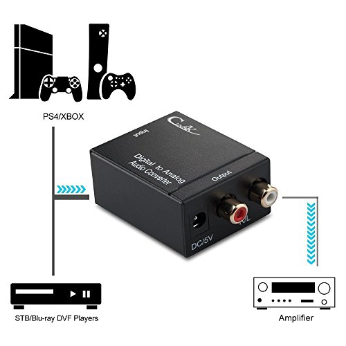 Applied to devices that output coaxial or fiber-optic digital audio, convert the signal to L / R analog audio to a speaker/ aplifier or other sound equipment