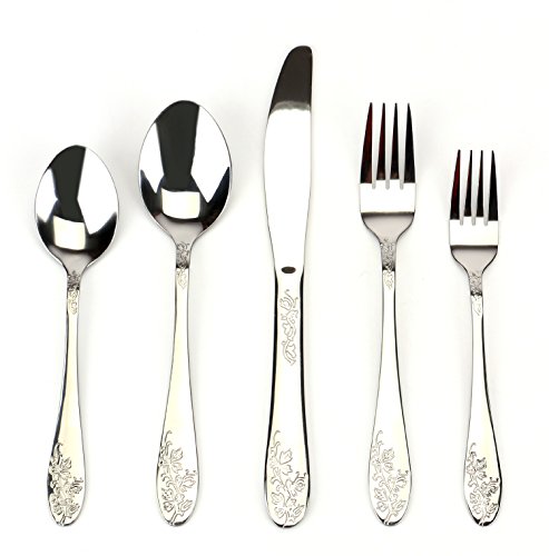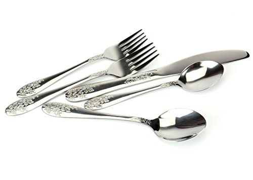 Bekith Silver Flower 40-Piece Stainless Steel Flatware Set, Service for 8