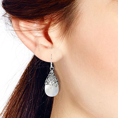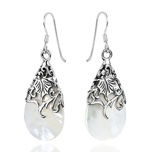 A floral vine of .925 sterling silver en-wraps a teardrop shaped white mother of pearl in this amazing design by Thai artisan Goong. These earrings are a perfect compliment to your style and natural beauty. PLEASE NOTE: The handcrafted nature of this product will produce minor differences in design, sizing and weight. Variations will occur from piece to piece, measurements may vary slightly.AERAVIDA works directly with gifted and talented Artisans from all over the world. At the core of our philosophy is fair trade and fostering a sustainable future for our Artisans.