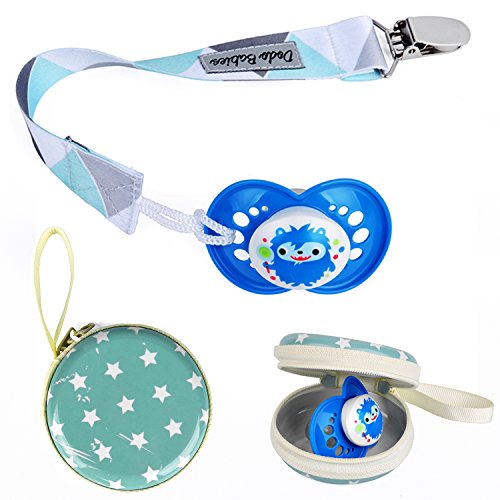 -. Title : Pacifier Clip by Dodo Babies Pack of 4 + Pacifier Case, Premium Quality Modern Designs Universal Holder Leash for Boys and girls, Teething Toy or Soothie, Baby Shower Gift Set