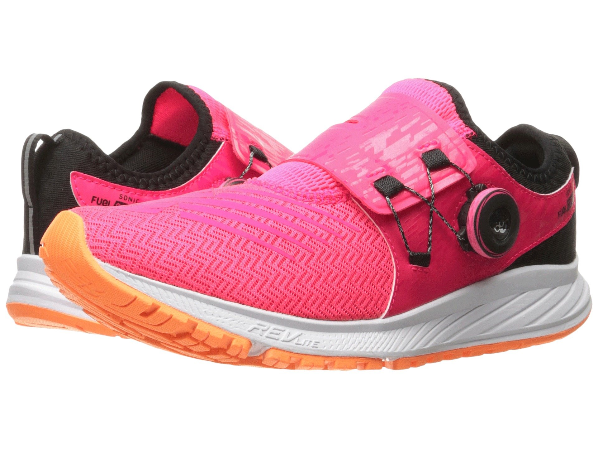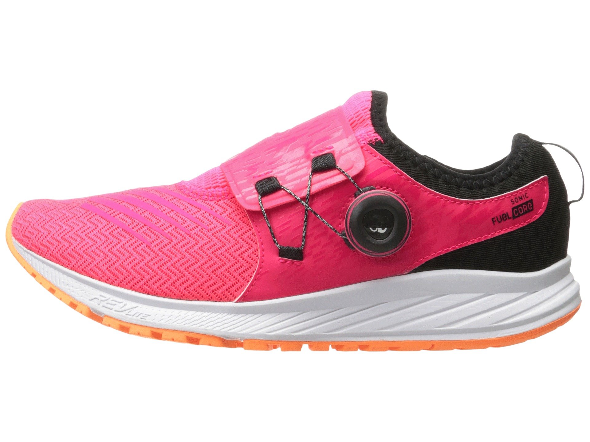 | Product Information SKU: #8906318Feeling a need for speed? The performance-boosting Sonic V1 takes your running game to another level.Predecessor: None.Support Type: Neutral.Cushioning: Lightweight, flexible response.Surface: Road.Differential: 6mm.Super-breathable and cooling air mesh uppers.Bootie construction with a stretch topline.Lightly padded tongue and collar.Features a Boa? Fit System closure at the lateral side of the tongue strap for a secure and adjustable fit.Soft breathable linings.Foam cushioned Fuel Core insole.REVlite midsole foam provides lasting, responsive cushioning with every stride. Durable rubber outsole.Imported.Product measurements were taken using size 8, width B - Medium. Please note that measurements may vary by size.Weight of footwear is based on a single item, not a pair.Measurements: Weight: 8 oz |