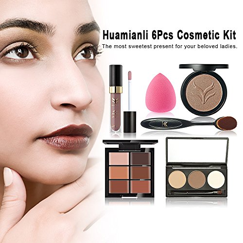 -. Title : Huamianli 6Pcs Cosmetic Makeup Set, 3 Colors Eyebrow Powder 6 Colors Concealer Lipstick Powder Puff Foundation Brush Kit