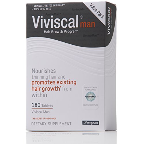 Viviscal Man #1 Hair Product For Hair Growth & Hair Thinning, 100% Drug Free Hair Supplement, 90 Day Gaurantee, 180-tabs