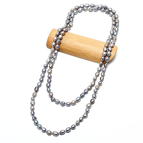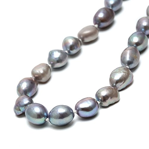 The necklace knotted between each pearl and the peacock coloration makes it a workable necklace to wear with many styles of clothing. It can be worn longer as a two-strand or closer to the neck wrapped. This string of irregularly shaped, pea-sized pearls is tonal in color rather than perfectly matched, which adds visual interest to its beauty. Each of the necklaces has different shades of the main color. The pearls are not all the exact same color - some are lighter and some are darker.Feature