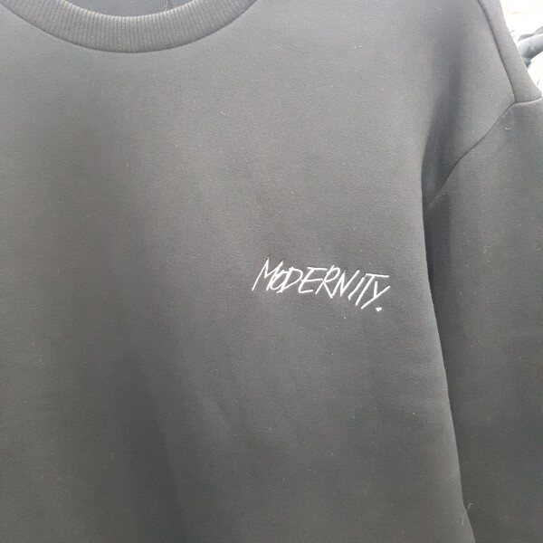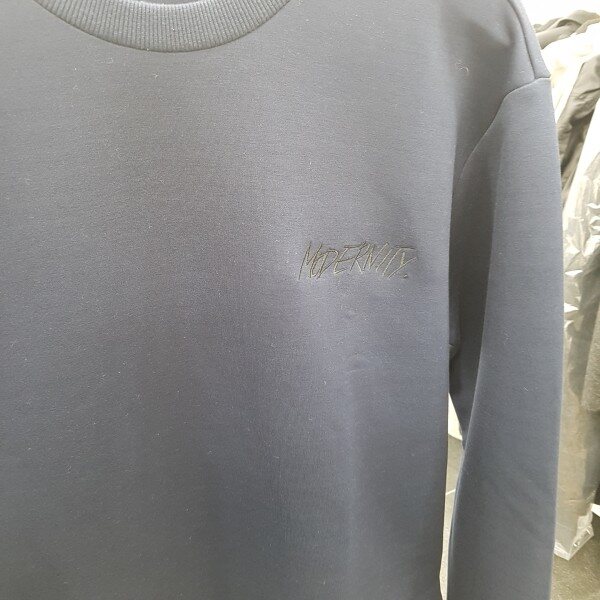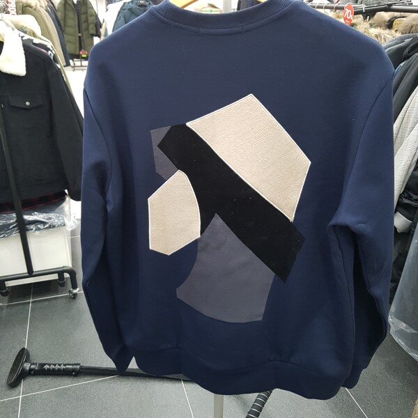 네오프렌 소재의 자수처리 된 맨투맨티셔츠입니다