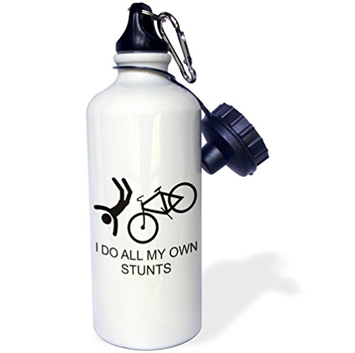 3dRose wb_193260_1 I Do All My Own Stunts Sports Water Bottle, 21 oz, White