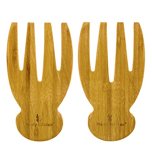 LARGE SIZE: The Bamboo wood salad bowl is 11” X 11” X 4” (L X B X H) and tapered towards the base to make it easy to toss the salad. The salad servers are shaped like large hands with four prongs for quick tossing and serving of salads.