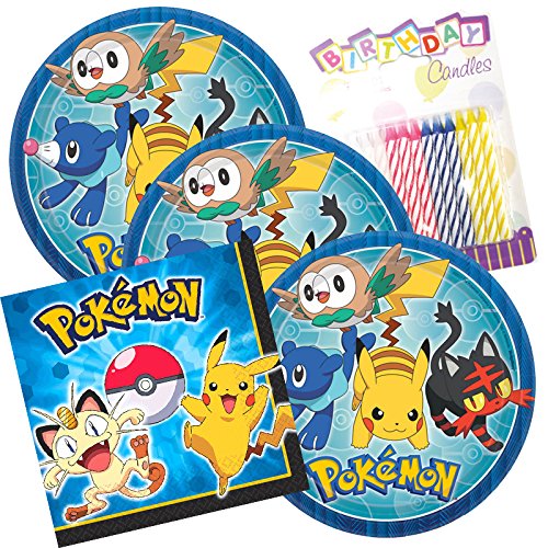 Pikachu & Friends Party Plates and Napkins Serves 16 With Birthday Candles