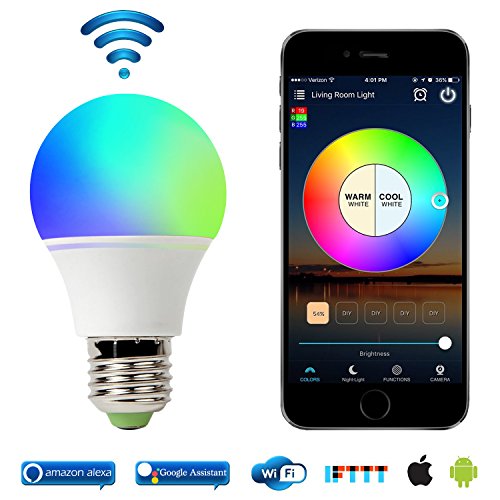 Smart Light Bulb Work With Alexa, RGB 45W Wifi Bulb Assistant for Amazon Echo and Google Home. Multicolor, Dimmable,No Hub Required, CE/FCC/UL Listed