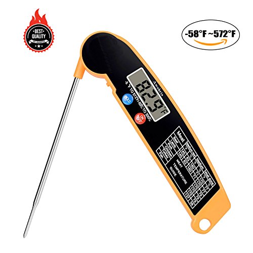 High accuracy The digital BBQ thermometer has -58°F -572°F (-50°C ~300°C) measuring temperature range, giving you accuracy of ±1°F at temperature from -4°F~392°F (-2°C to 200°C) and ±2°F at other temperature range.