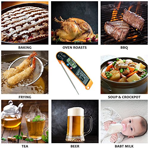 ❤ EASY TO USE: Awekris Digital Meat Thermometer has a 4.5 inches stainless steel foldable probe, designed to keep your hand away from the heat, and it contains a strong magnet for easy storage