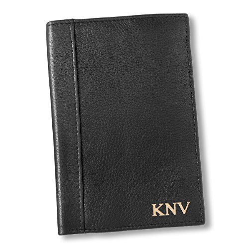 Product Description When considering travel gear gifts for him, choosing our Personalized Black Borello Passport Travel Wallet is an ideal solution to help make his international travel carefree. The stylish full-grain leather wallet with personalization has an attractive vertical profile with an inside passport pocket and several staggered slots for credit and business cards. His photo ID can be viewed easily through the bottom window slot. The personalized gift features unique radio frequency security blocking to prevent electronic pickpocketing, and compact designing to easily slip inside a vest pocket or carry-on bag. Select one of several debossing options of personalization for yourself, or as a considerate gift for husbands, fathers, brothers, or friends. The handcrafted leather passport wallet is built for durable, long-lasting use. 0