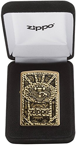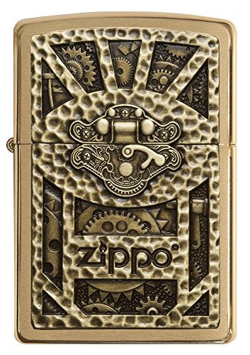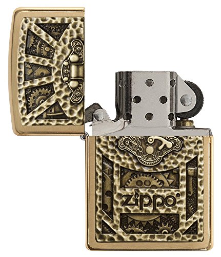 Zippo Gear Design Pocket Lighter, Brushed Brass