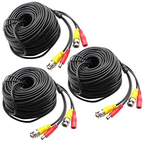 3-Packs 98Ft. Black, Pre-made All-in-one BNC Video and Power Cable Wire with Connector DC 2.1mm for CCTV Surveillance Security Camera