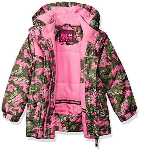 Pink Platinum advance girls camo heart print snowsuit with ear warmers