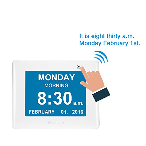 What makes this clock outstanding? It speaks the time. The patent protected unique design gives an attractive outlook. The voice button located on the upper right corner is the only button on the face of the unit so it is easy to see and use. Simply push the button and it talks exactly what's on the screen. Those with cognitive impairment, dementia, Alzheimer, visions problems, or weak memory loss, etc can use it to listen to the time and the day. Perfect for people forgetting the day.