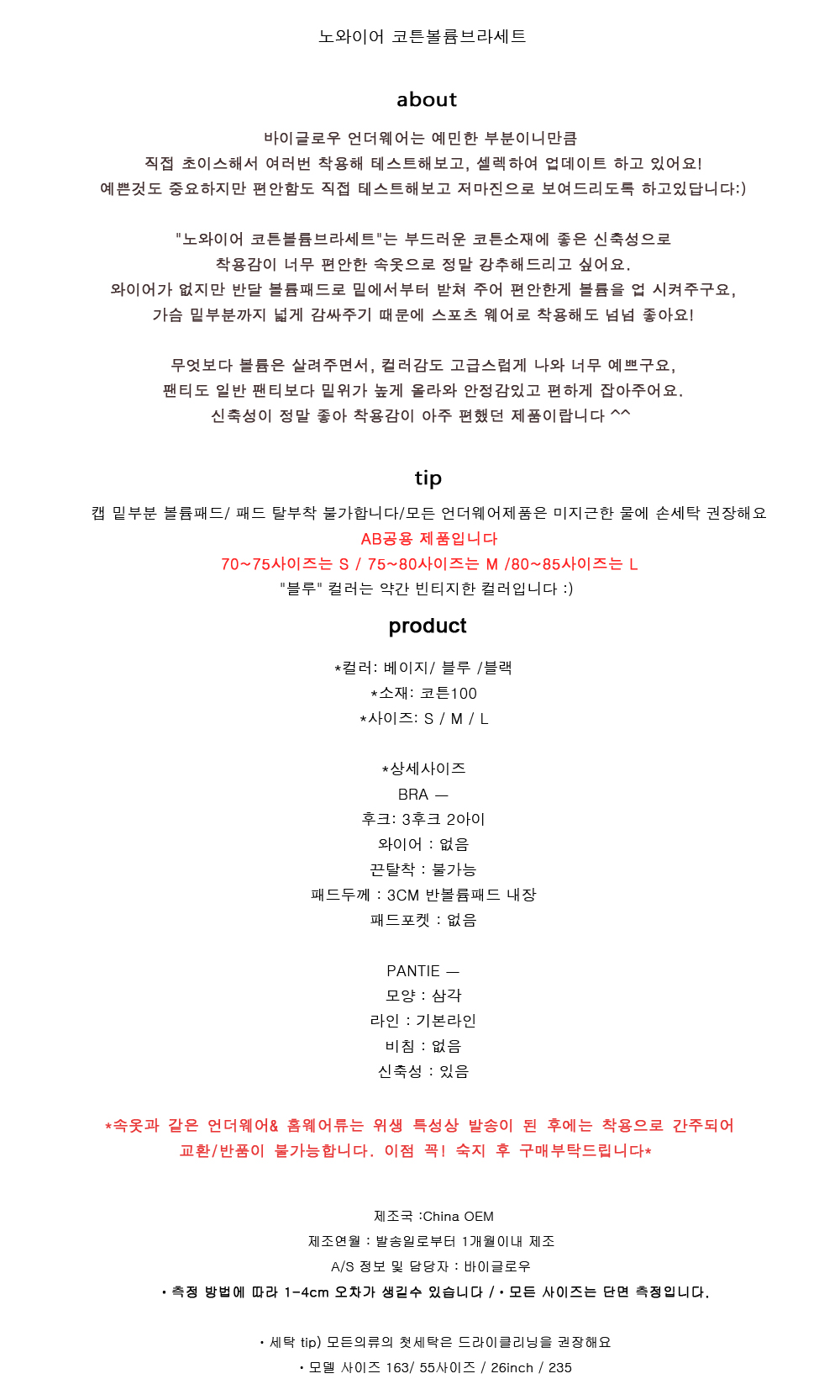 Noirai Cotton Volume Bra Set 20 Women's Underwear Pad Comfort Sports