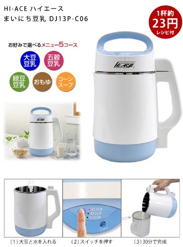 ■ Product name Soy Milk Maker FUJITACHI Soy Milk Hi-Ace DJ13P-C06 ■ Standard 1.3L, Soy Milk Capacity: 1100 ~ 1300cc ■ Part No. DJ13P-C06 ■ Size 233 × 169 × 326 mm ■ Weight 2.4 kg ■ With Other Tofu Making Set, AC 100 V ■ JAN