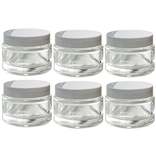 Clear Glass 2 oz/ 60 ml Thick Wall Balm Jars with White Foam Lined Smooth Lids (6 pack)